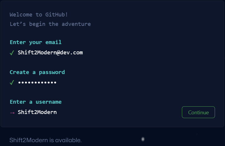 然后是设置用户名。如用户名被占用,会在下方提示 Username ‘xxx’ is unavailable。