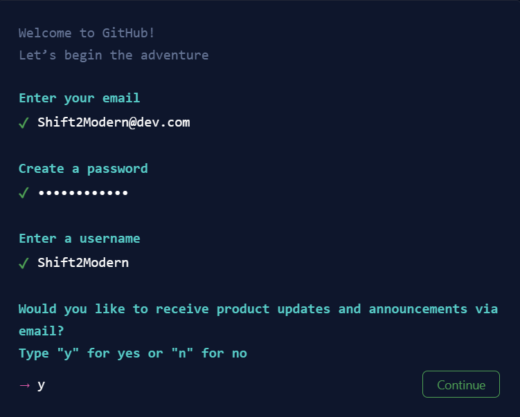 此处是选择是否接受 Github 的广告邮件,输入 y 接受,输入 n 不接受。